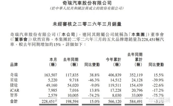 集团旗下的奇瑞、星途、捷途、iCAR和智界三月份的市场表现如何呢?