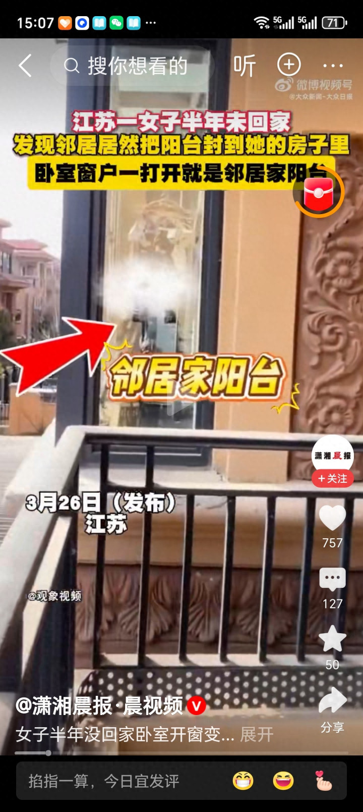 #女子半年未归卧室变邻居阳台 #私自改造房屋违法 #邻里纠纷 #房屋维权 #离谱事件